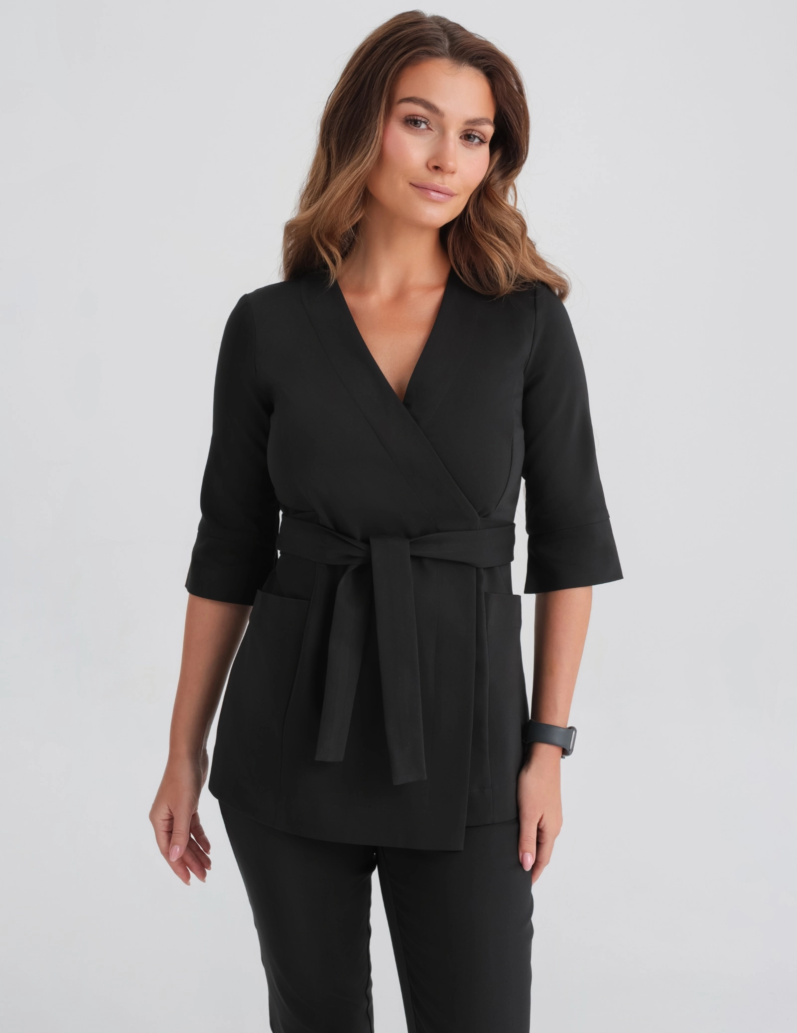 The ultra-feminine ROSALIE medical blouse is made of high-quality, soft COMFY fabric in dirty pink. The detail of the cracked sleeves, French cut at the bust and slim waist give it a feminine touch in an elegant style. The blouse is tied at the waist, with tie front and tie back options.