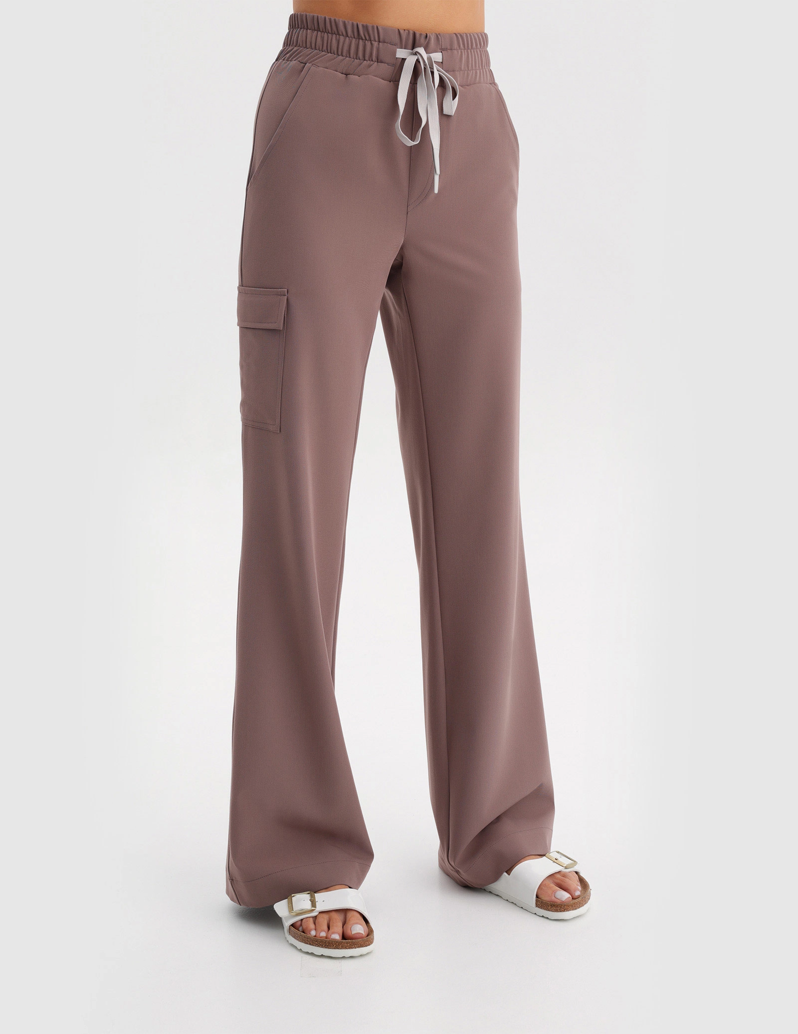 High-waisted pants with wide legs. Comfortably tailored - no pressure at the crotch. Wide elastic waistband highlights the waist. Cargo pocket on the leg. Perfectly paired with the fitted Casy scrub top.